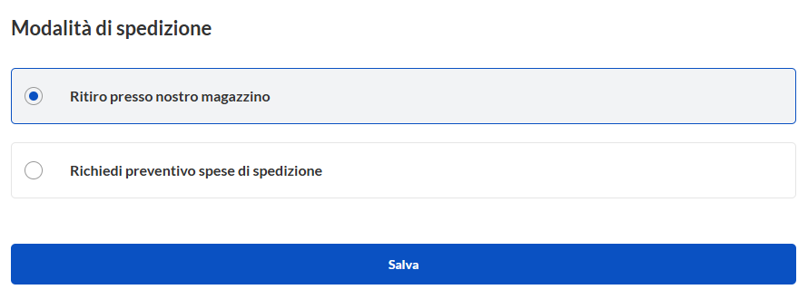 - RITIRO PRESSO NOSTRO MAGAZZINO che non prevede costi di spedizione