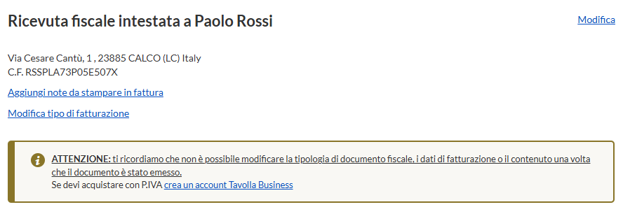 7. Se in fase di pagamento la tua banca richiede il numero di fattura per eseguire il “Bonifico bancario parlante”, potrai richiedere la "Fattura anticipata" scrivendo a info@tavolla.com".