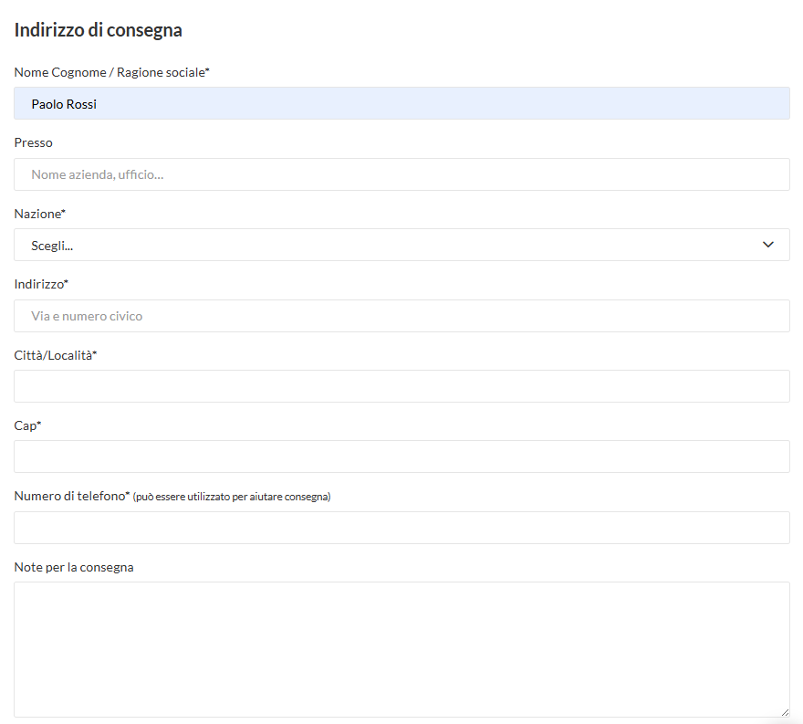 3. Inserisci un indirizzo di consegna. Nella sezione “Note per la consegna”, aggiungi eventuali informazioni utili per il corriere che verrà incaricato della spedizione.