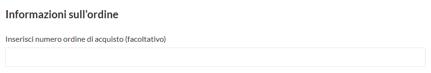 - Durante la fase di acquisto dell'ordine, dopo aver inserito i dati di fatturazione, inserisci il numero d’ordine nell’apposito campo.