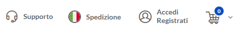 Nel menu in alto a destra della pagina, tra "Supporto" e "Accedi o Registrati", clicca su "Spedizione".