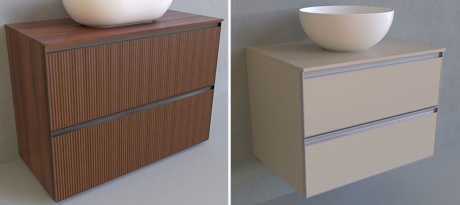 Collezione di mobili contenitori per il bagno sospesi e a terra dalla forma semplice e lineare. Le proposte Cubika si abbinano a tutti i lavabi da appoggio del catalogo Flaminia. Cubika è disponibile in diverse finiture: essenza legno, legno laccato opaco e grès.