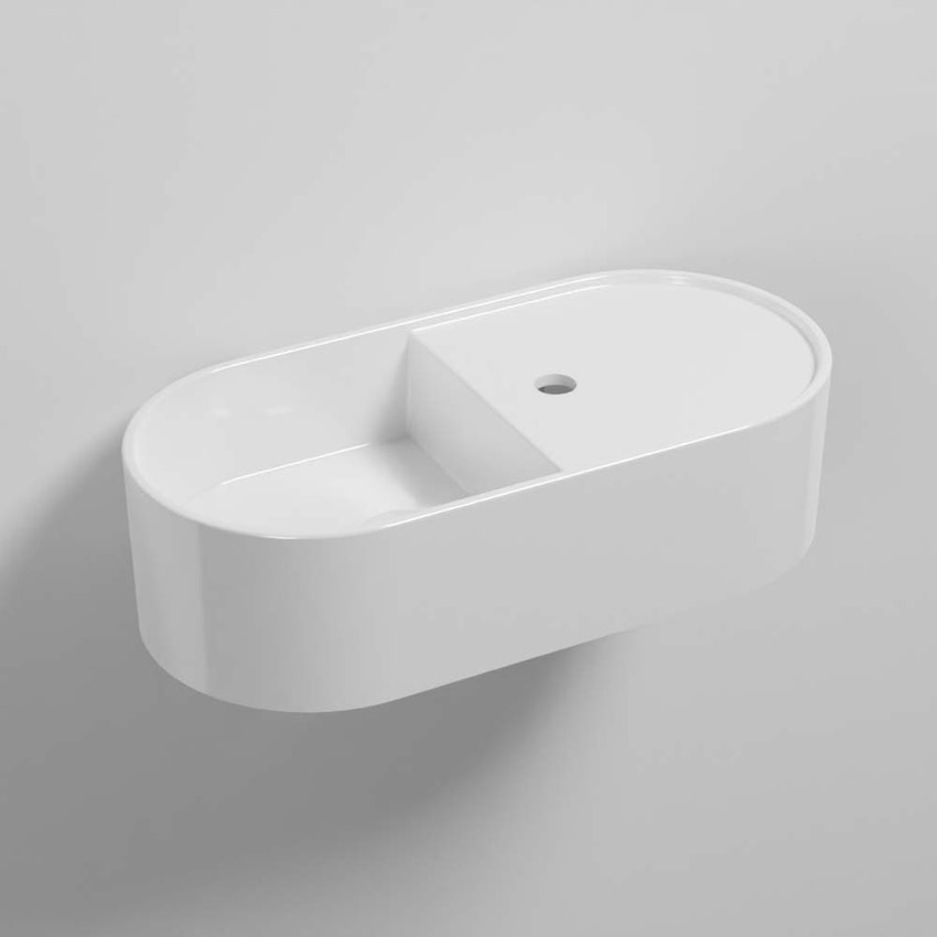 Lavabo bagno Sospeso/Appoggio Cielo Les petites LPLAO60, disegnato da Andrea Parisio & Giuseppe Pezzano, Con 1 foro per rubinetto, Senza troppopieno, larghezza cm 60, lunghezza cm 30, altezza cm 16, forma Ovale, finitura Bianco lucido