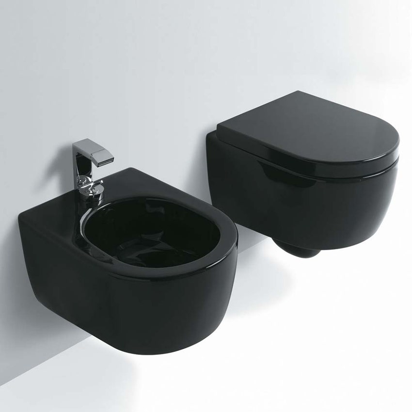 Cielo SMILE MINI 48 set sanitari sospesi, vaso senza brida, coprivaso in termoindurente frizionato, e bidet monoforo, colore lavagna finitura opaco
