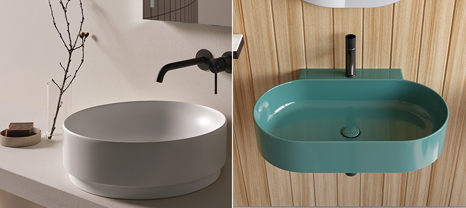 Mare offre un'ampia scelta di lavabi di forme diverse per adattarsi a ogni esigenza di stile e spazio. A questi si affiancano coppie di sanitari disponibili sia nella versione sospesa sia a terra, ideali per ogni tipo di installazione.