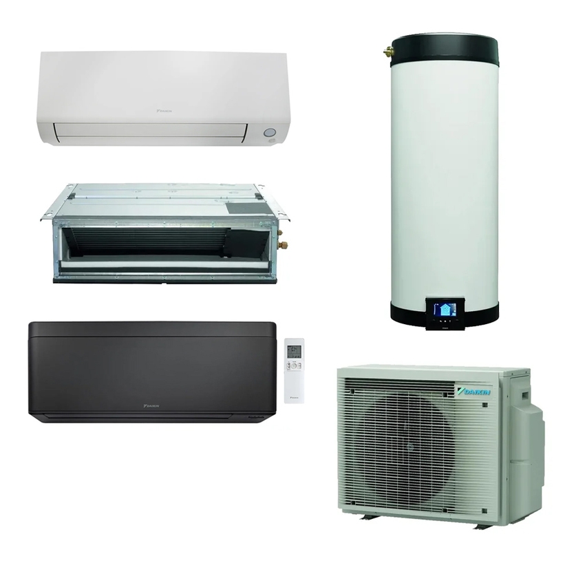 Daikin MULTI+ sistema per raffrescamento, riscaldamento e acqua calda sanitaria con serbatoio da 120 L | unità esterna 5.2 kW | unità interne 5000+9000+7000