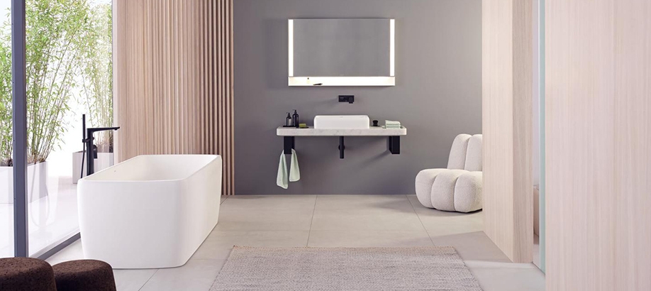 Nella collezione Duravit Qatego trovi anche specchi e spaziosi armadietti a specchio, perfetti per contenere in ordine tutti i prodotti bagno. Gli specchi dispongono di una pratica illuminazione LED e sono controllabili tramite un sensore touchless.
