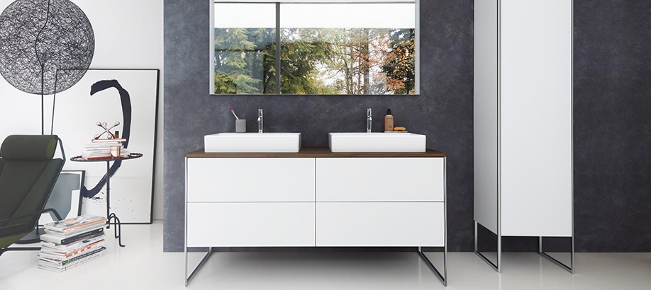 Abbinando materiali diversi, la serie di mobili per il bagno XSquare crea novità stimolanti. Le finiture di colonne e basi fanno risaltare i caratteristici profili cromati, che sono presenti in tutta la serie e le conferiscono uno stile unico, di grande qualità.
