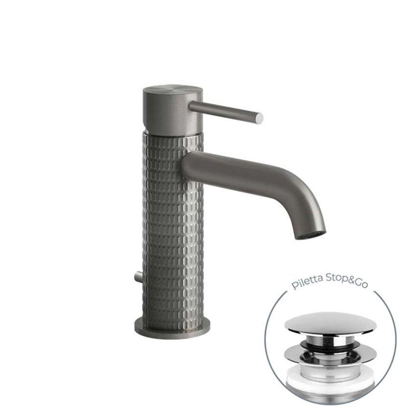 Gessi 316 MECCANICA miscelatore monocomando per lavabo H.16 cm, con piletta Stop&Go, finitura steel brushed 54201#239