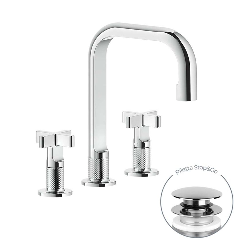 Gessi INCISO+ gruppo lavabo H.24 cm, tre fori, con piletta Stop&Go e flessibili di collegamento, finitura cromo 58113#031