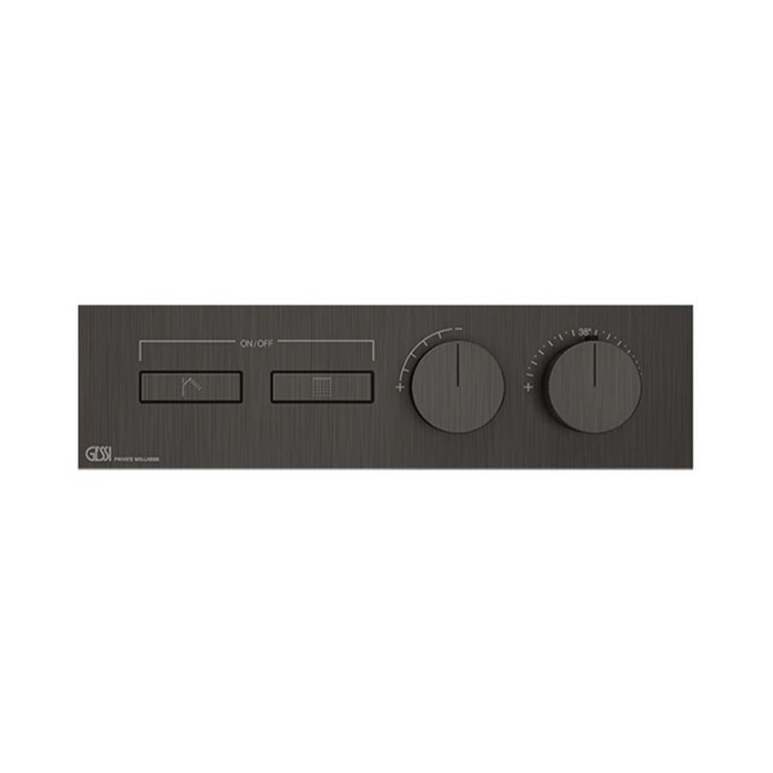 Gessi HI-FI LINEAR miscelatore termostatico a due funzioni indipendenti, con pulsanti on-off, senza corpo incasso, finitura black metal brushed PVD 63012#707