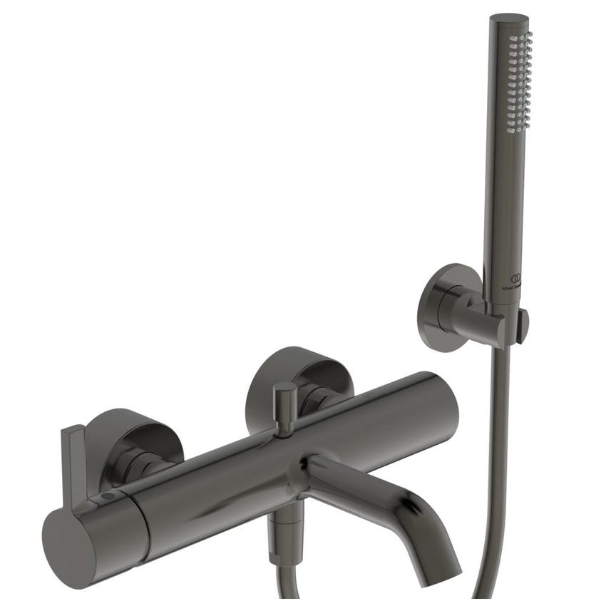 Ideal Standard JOY miscelatore monocomando esterno per vasca/doccia, con doccetta a 1 funzione, supporto fisso a muro e flessibile 160 cm, finitura magnetic grey BC787A5