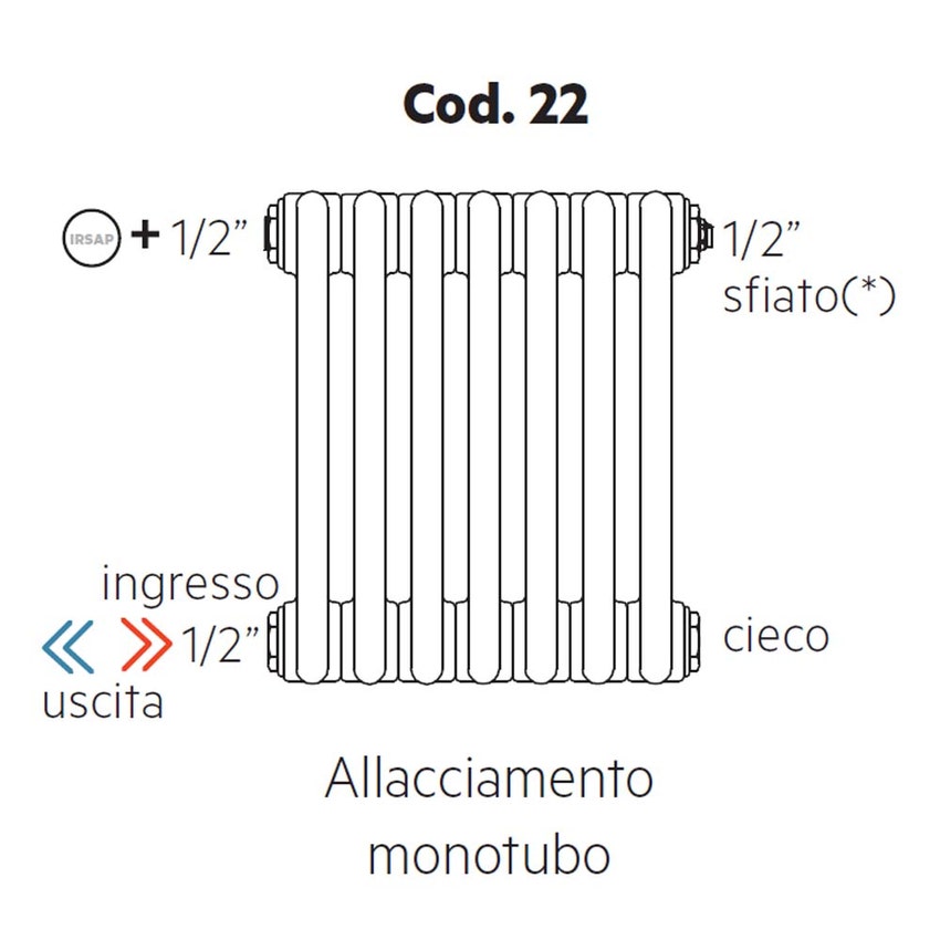 Irsap configurazione allacciamenti monotubo orizzontali, 1/2" ingresso e 1/2" uscita Cod.22