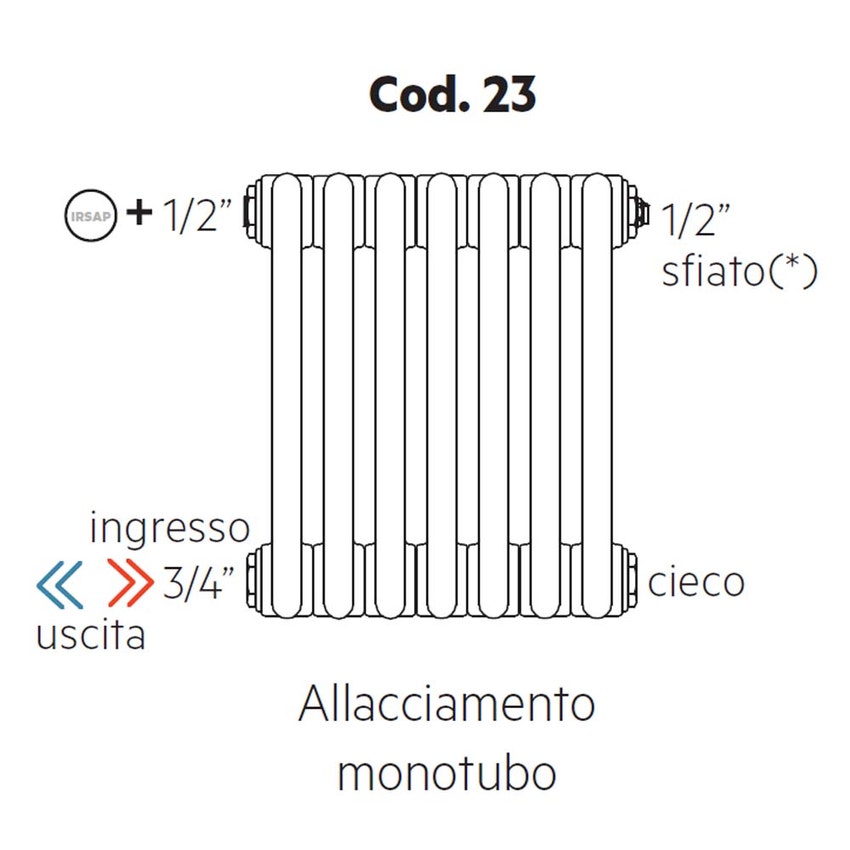 Irsap configurazione allacciamenti monotubo orizzontali, 3/8" ingresso e 3/8" uscita Cod.23