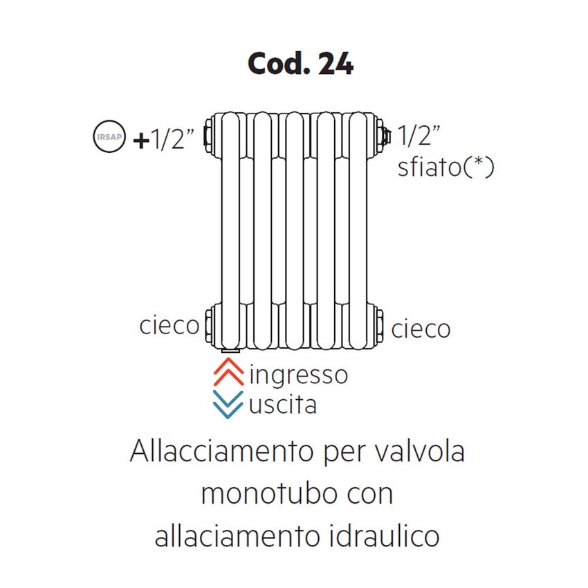Irsap configurazione con allacciamento monotubo VERTICALE con allacciamento idraulico saldato, 1/2" sfiato Cod.24
