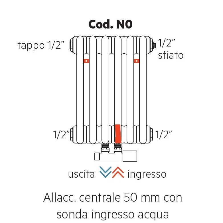 Irsap TESI FIT configurazione allacciamento centrale 50mm con sonda ingresso acqua Cod.N0