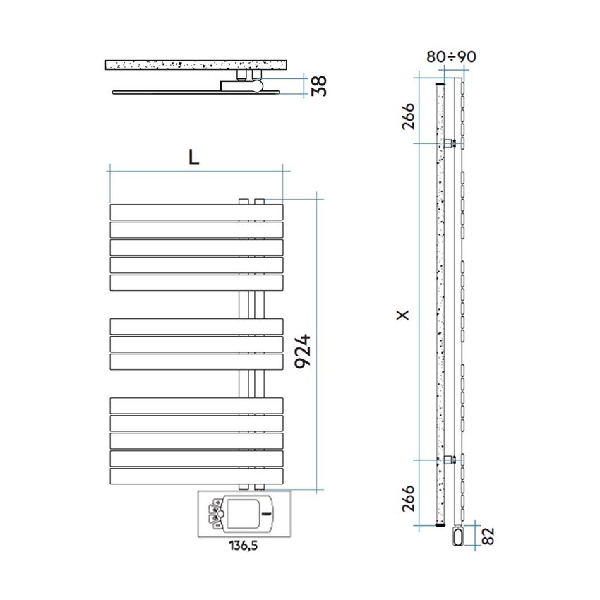 - 4 attacchi per fissaggio a muro in tinta con il radiatore