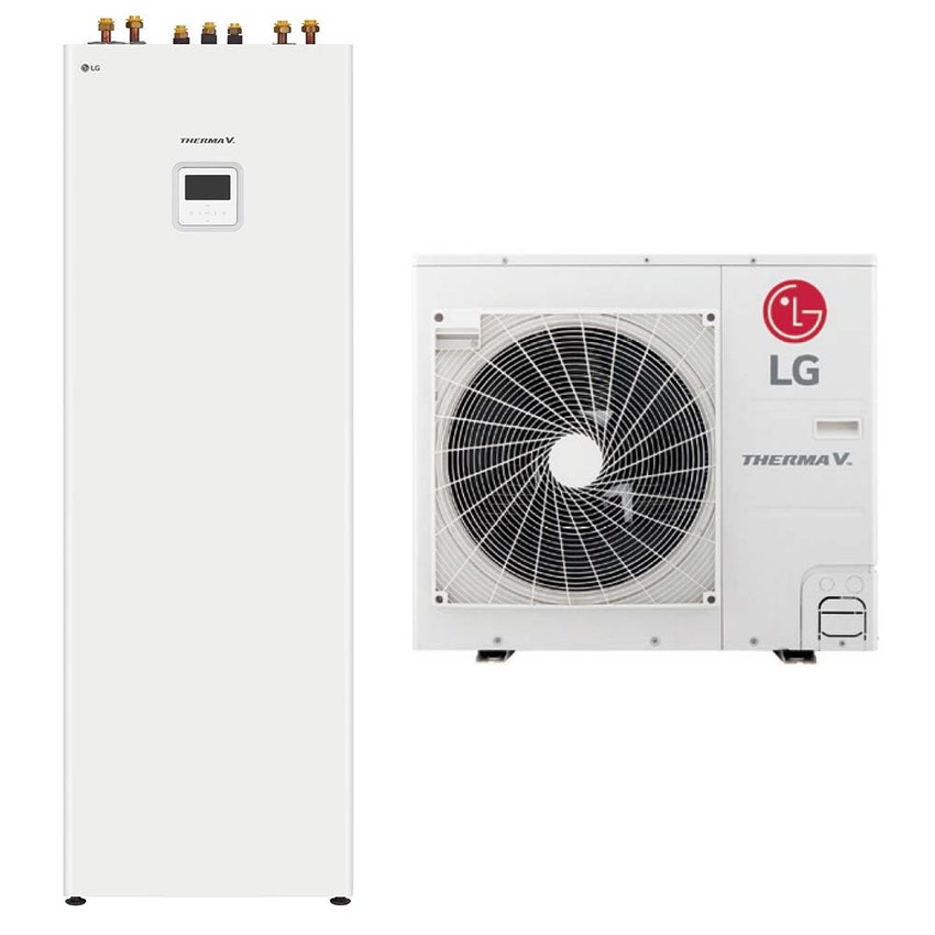 LG THERMA V R32 sistema idronico monofase composto da pompa di calore 7 kW e unità interna COMBI UNIT con accumulo 200 litri