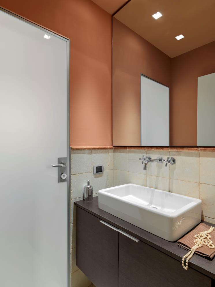 Sanitari di un bagno arancione: scuri o chiari in base all’effetto che vuoi ottenere