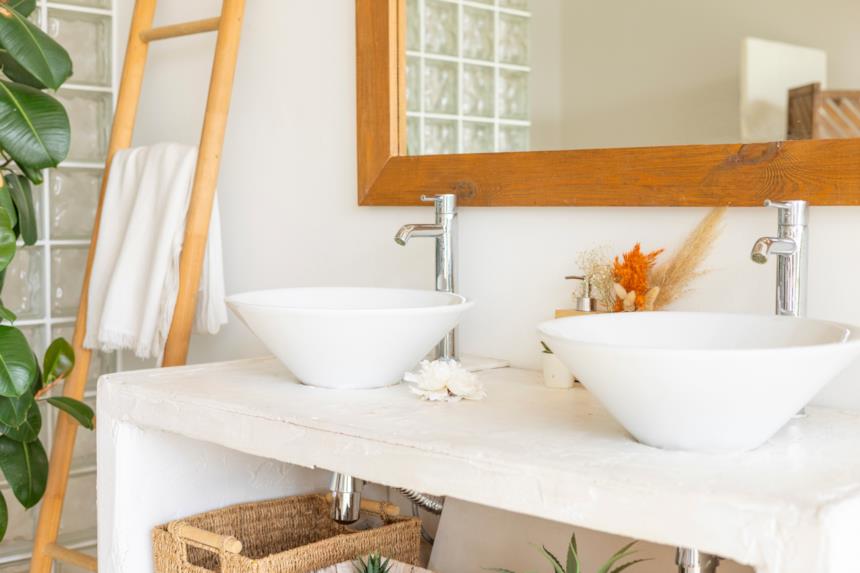 Rivestimenti per un bagno provenzale: naturali e delicati