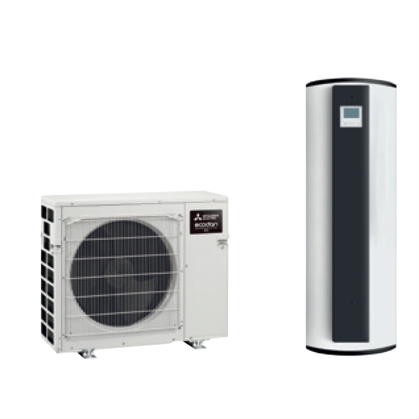 Mitsubishi Sistemi SPLIT, terminale raffrescamento ad Aria, terminale riscaldamento ad Acqua e aria, per acqua calda sanitaria, 3 unità interne abbinabili, 200 l capacità di accumulo, gas refrigerante R32, classe energetica ACS A+