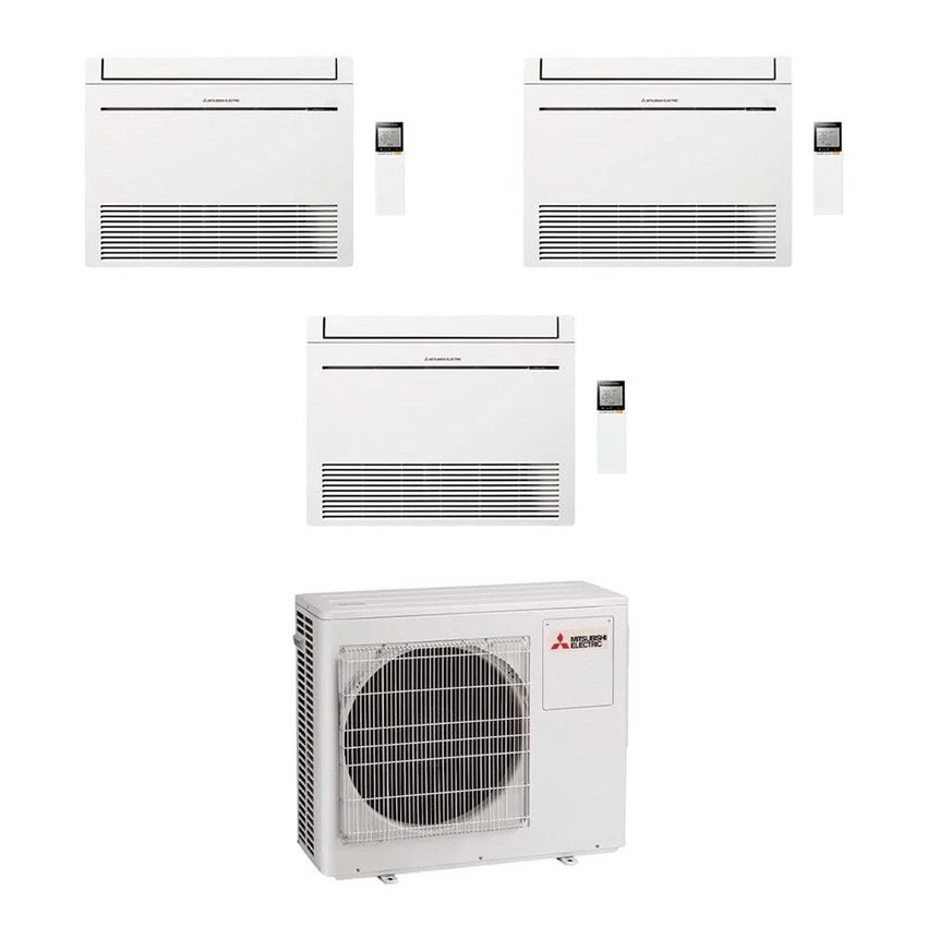 trial split Mitsubishi MFZ-KT Console, posizionamento A pavimento, pompa di calore, inverter, BTU 9000+9000+9000, potenza caldo kW 10.5, potenza freddo kW 10.2, con sistema Wi-Fi, gas refrigerante R32, comando Sì, finitura Bianco
