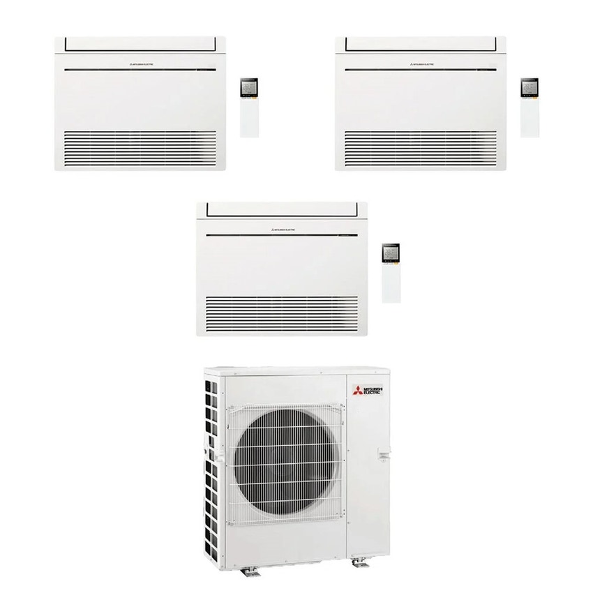 Mitsubishi MFZ-KT Console Climatizzatore a pavimento trial split inverter Wi-Fi bianco | unità esterna R32 12 kW unità interne 9000+9000+9000 BTU
