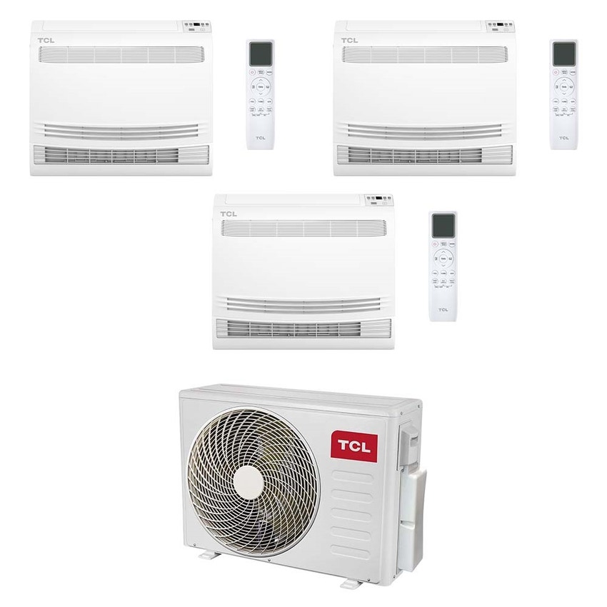 TCL CONSOLE Climatizzatore console da pavimento trial split inverter Wi-Fi bianco | unità esterna R32 7.9 kW unità interne 9000+9000+9000 BTU