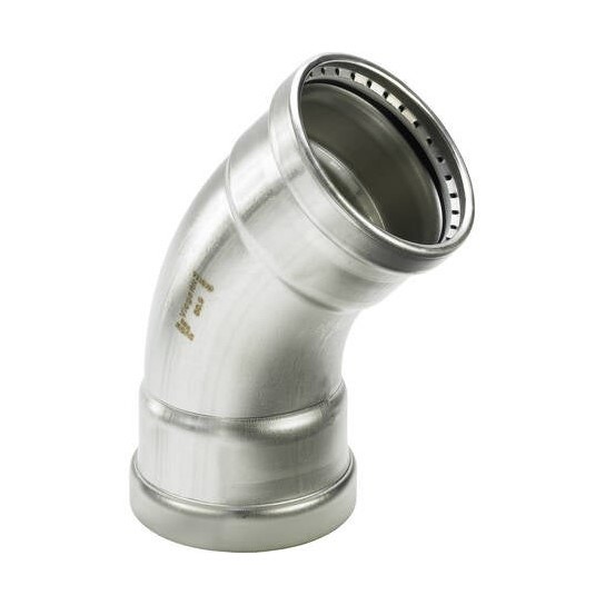 Viega SANPRESS INOX XL curva a 45° di Ø 64, di acciaio inox lucido con sc-contur (acqua) 578008