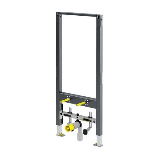 - Telaio verniciato a polvere (40x40), fissaggio regolabile in altezza, curva di scarico DN40/50 accorciabile, nipplo di gomma DN50/30, materiale di fissaggio, freno a pedale per la regolazione dell'altezza di montaggio